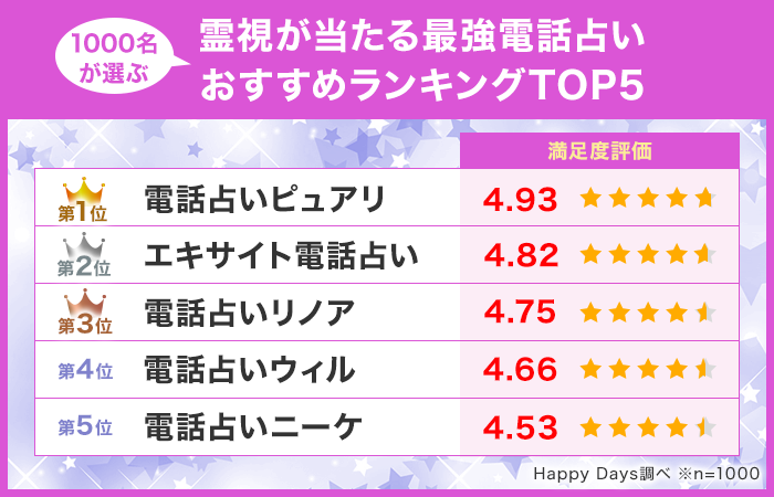 ・1000名が選ぶ電話占い満足度No.5