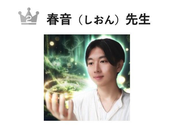![]() 2位 春音先生 | 水晶霊視とクリスタルヒーリングでの的中率はもちろん、癒しの鑑定はニーケでも大評判。 単なる未来予測に留まらず、相談者の本当の願望を明確にし、自分らしく生きる道筋を示す。 →春音先生に占ってもらう |