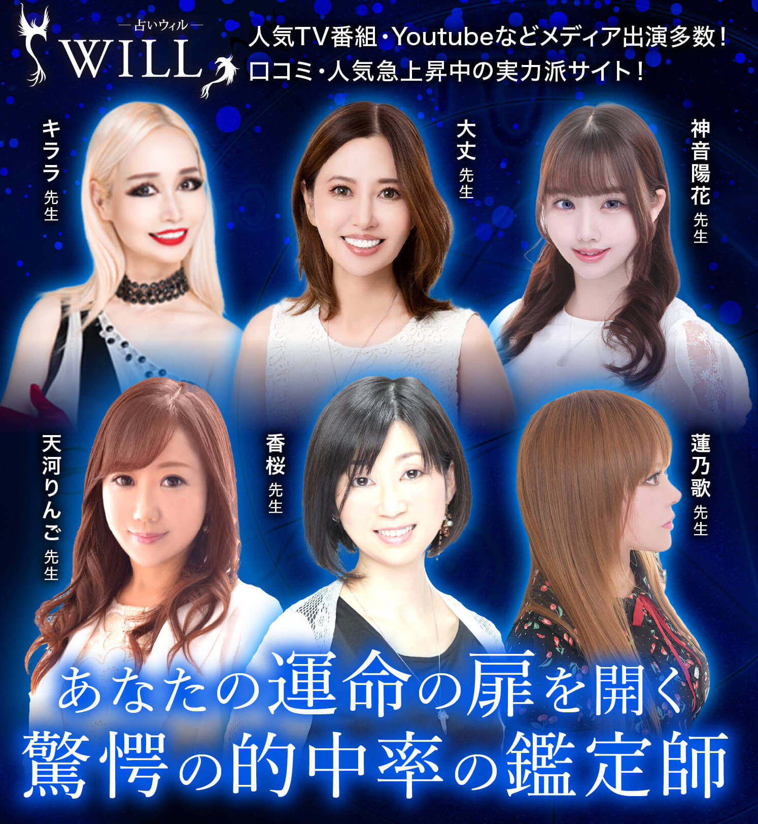 TVやメディア出演、芸能人も利用するほど高い実力を持った占い師が多数在籍する『電話占いウィル』。