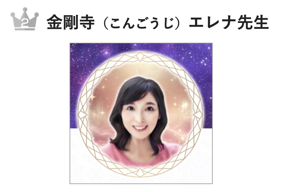 |  2位 金剛寺エレナ先生 | 第三の目で視えた未来の流れを的確に導く腕前は、ルチアでも当たり過ぎると話題。 真言マントラによる「法雨」の導きで状況好転の兆しを捉え、最短で幸せな未来を引き寄せる。 →金剛寺エレナ先生に占ってもらう |