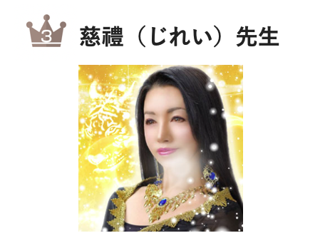 |  3位 慈禮先生 (じれい) | 大手電話占いで圧倒的No.1だった慈禮先生がピュアリに電撃移籍。最高峰の実力でピュアリでもすぐ大人気に。 先祖代々伝わる最高峰の霊能家系で鑑定歴28年。強い霊視・霊感、透視、祈祷で相談者の願望成就を叶える。 →慈禮先生に占ってもらう |